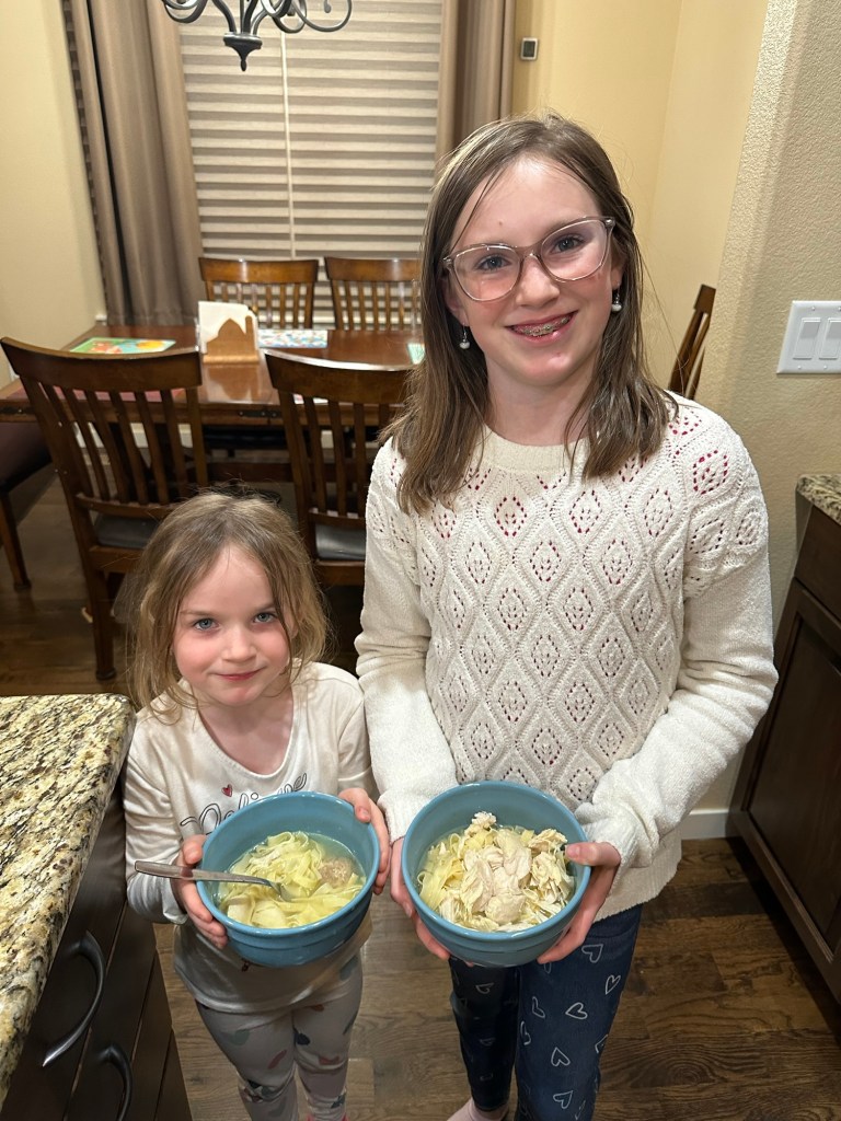 The noodles we made for the fundraiser were dried and put in bags, so they could be cooked later. If you are looking for a homemade noodle recipe to make today, there is a wonderful recipe that has been passed down in my husband’s family that he likes to make with our daughters. Click here for that recipe.