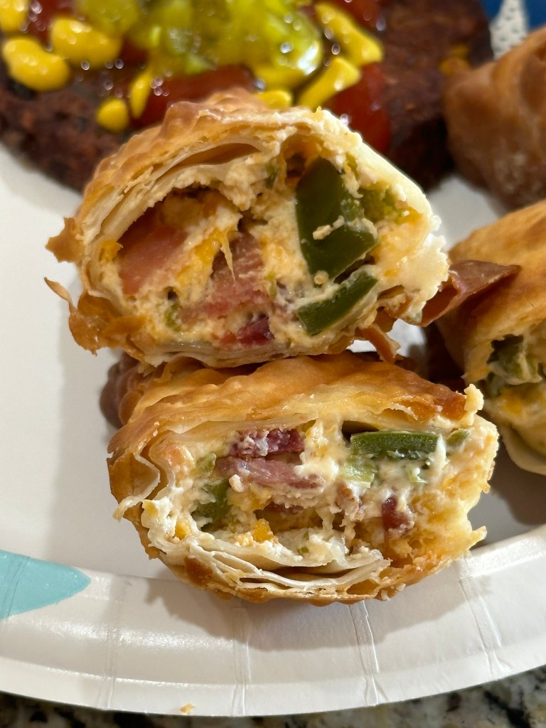 This is extremely similar to the recipe we posted a few years ago. This time we added more bacon and more cheese and more jalapenos. We love all things jalapeno popper and these egg rolls are amazing! And… I LOVE the way these pictures turned out. So colorful and vibrant… bringing on all my happy jalapeno popper feelings. I’ve added the ingredients to the grocery list and I’m going to pick them up today.