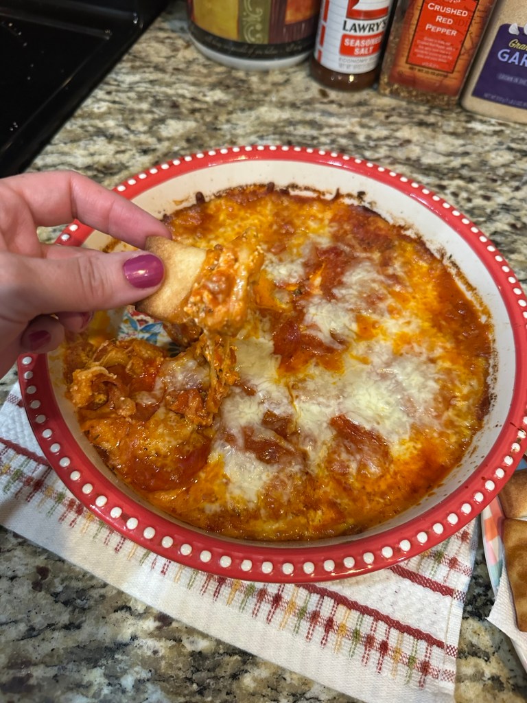 While on holiday during spring break there were some things that I really wanted to do and trying several news recipes was pretty high on the list. We had this pizza dip as part of an appetizer dinner on Thursday during March Madness. Stay tuned for the recipe for the pizza crust dippers. They were awesome and the perfect dipping vessel.
