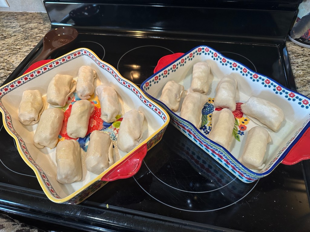 8. Wrap them up, cover again and let them rise again for 30-50 minutes. We used original yeast rather than rapid rise so these would rise faster with the rapid rise yeast.
