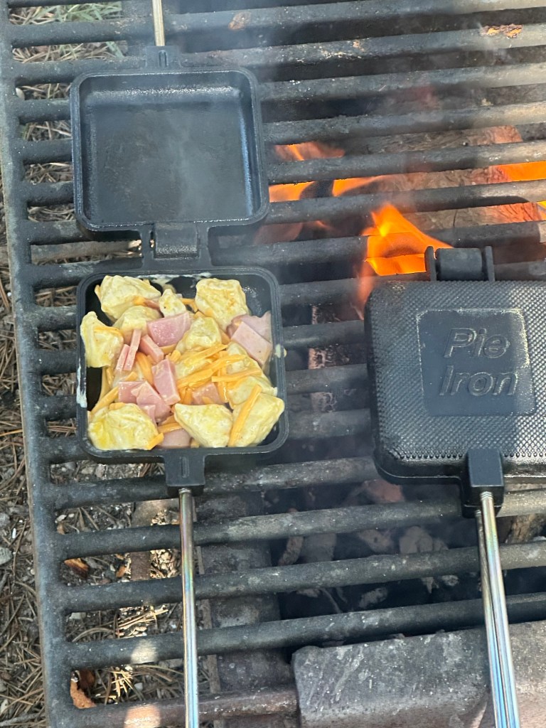 My brother-in-law brought pie irons camping once and used them to make cherry pies over the campfire. As we were starting to think about a menu for our camping trip, I wanted to buy a set and give them a try.