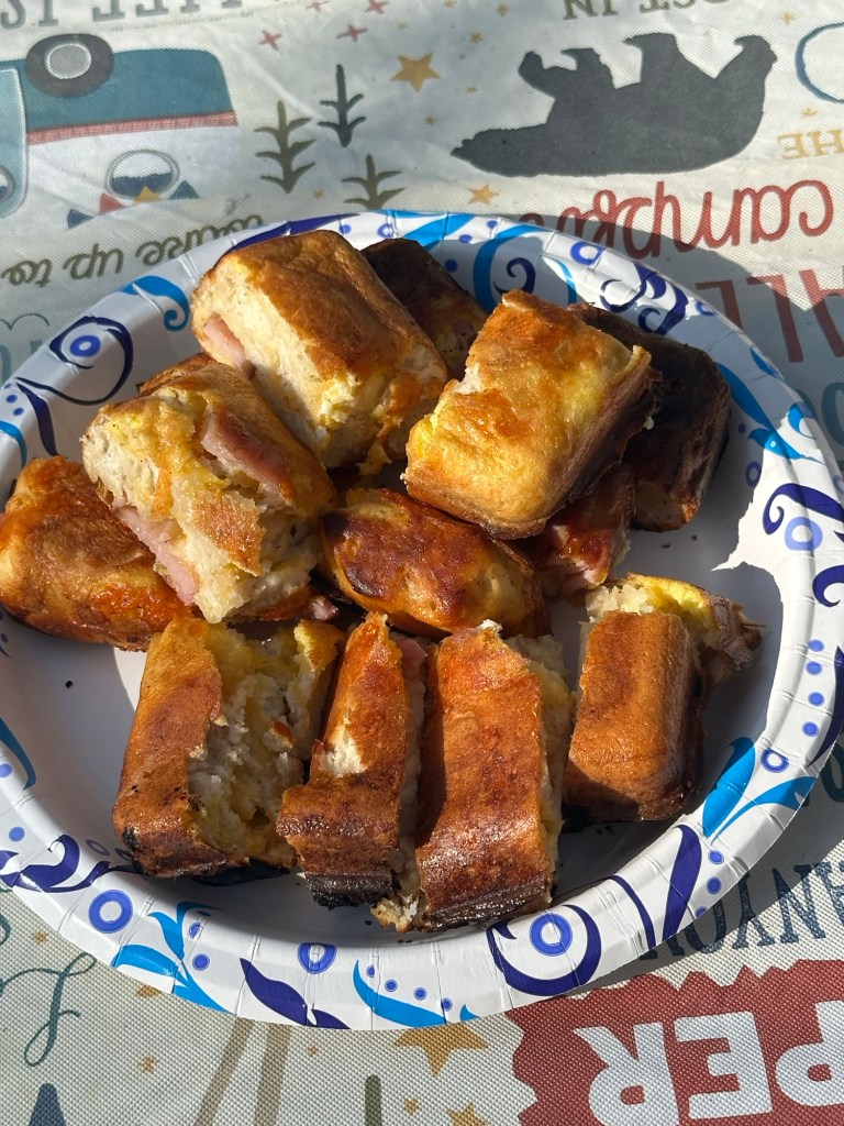 Cut the biscuits into small pieces (about 8-10 pieces per biscuit.) We used kitchen scissors so it was a rough chop that wasn’t completely consistent and it worked well.