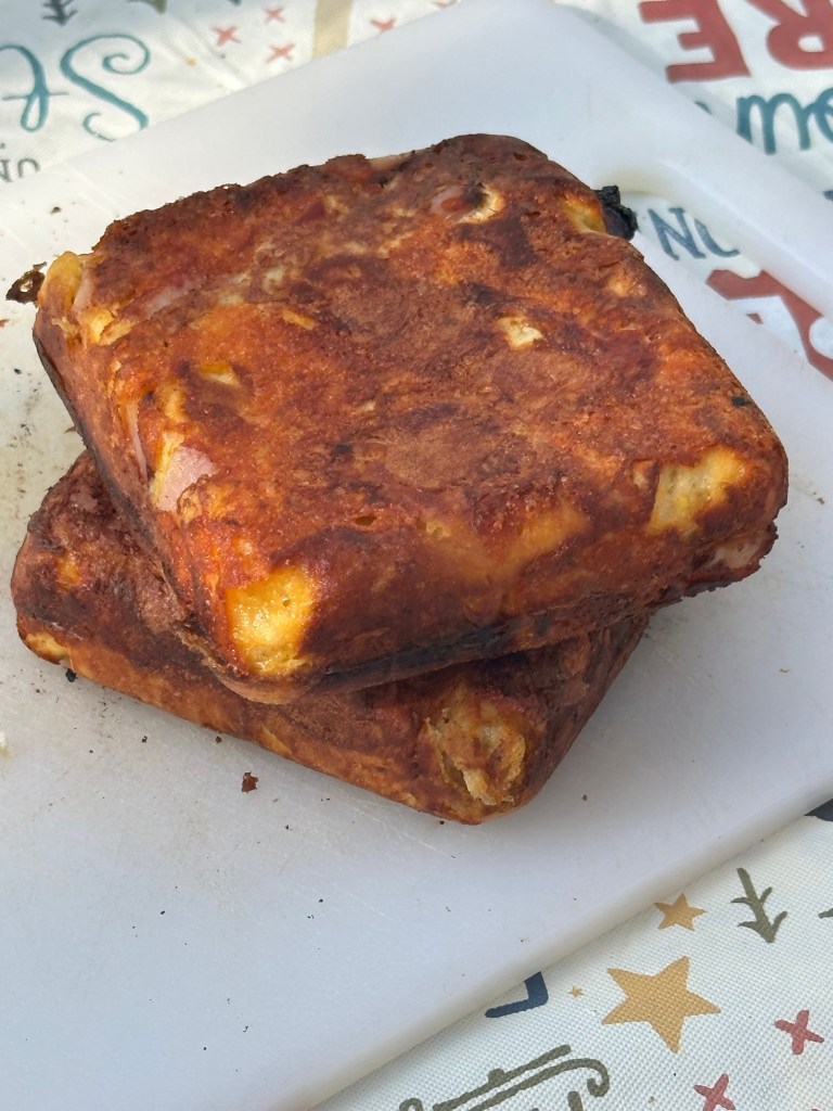 Fill the iron and close. Cook over the fire about 8-10 minutes. Flip around the halfway mark.