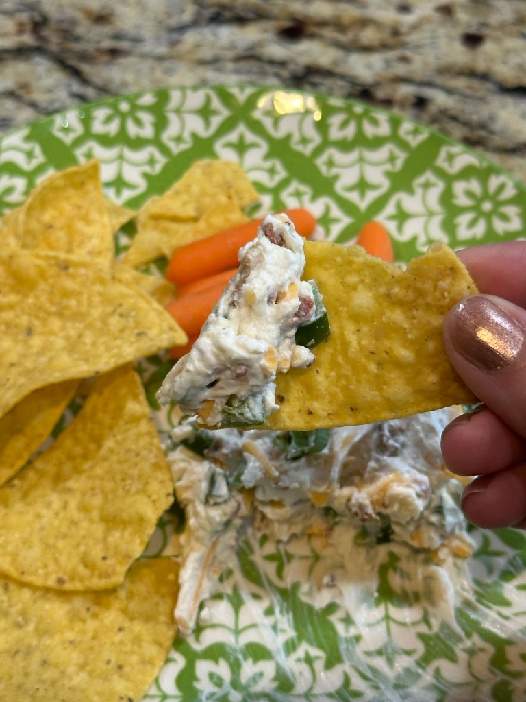 Here’s another dip recipe… because truly the only thing better than one dip recipe is two. This recipe is especially good when the jalapenos are nice and hot. They were!