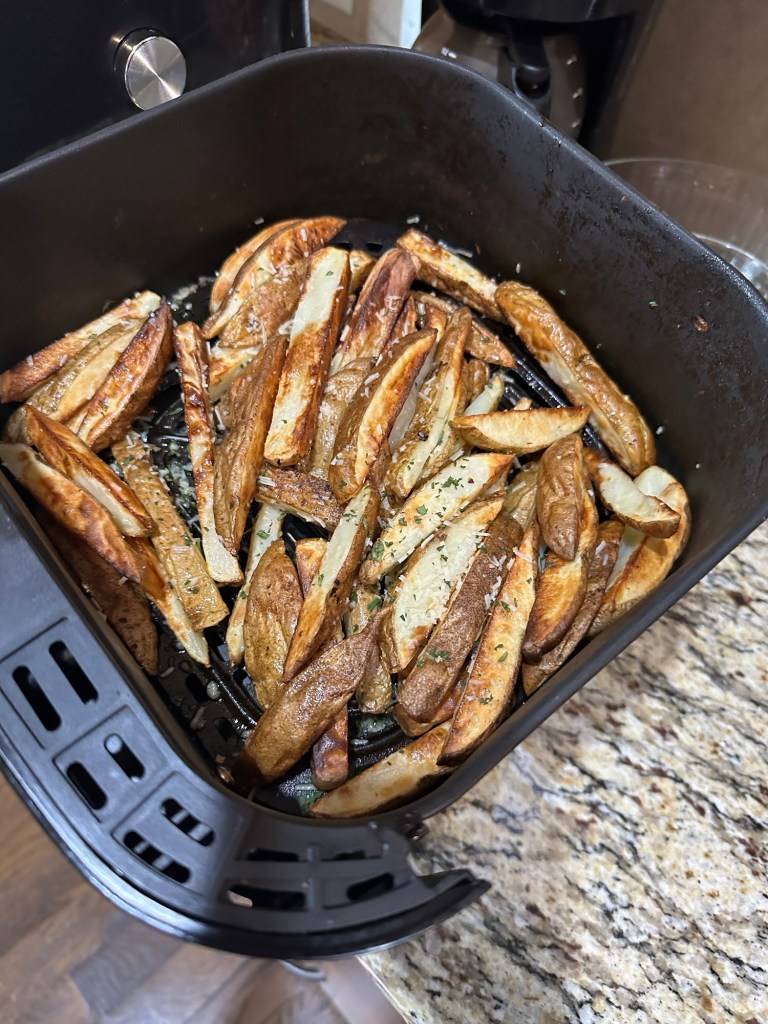 Add the rosemary and parmesan cheese and air fry another 3-5 minutes until they are as toasty as you like them.