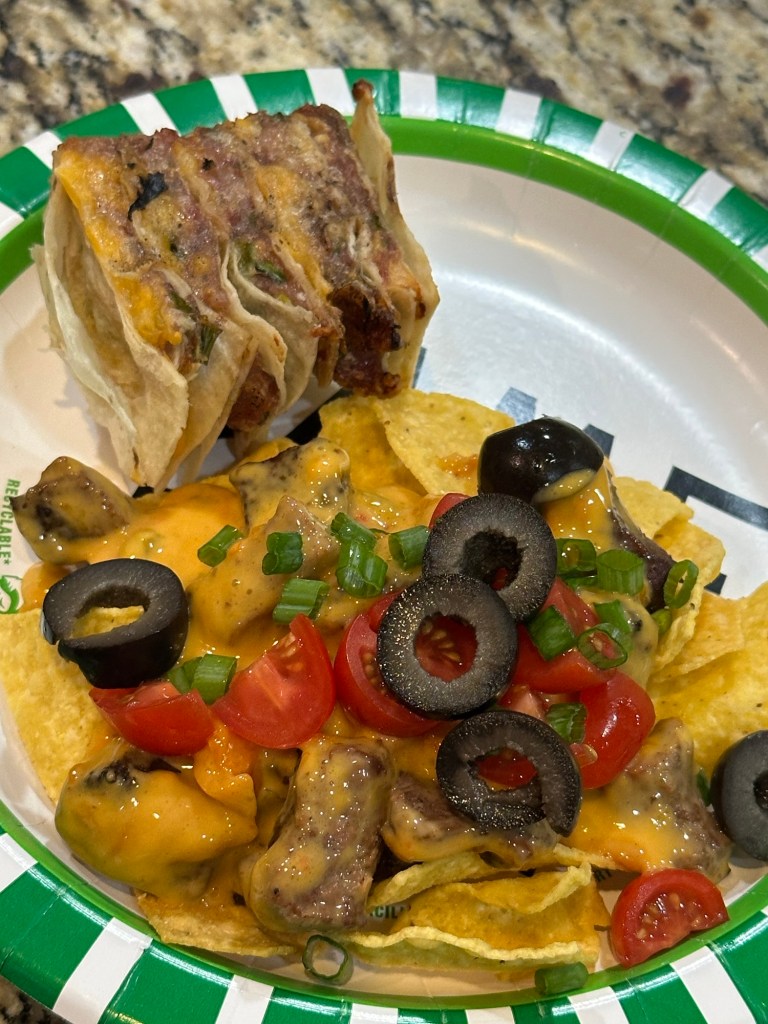 My husband made these a while back as a part of our game day snacks. The layers are made in a clever way and he looked like he was having fun putting them together.
